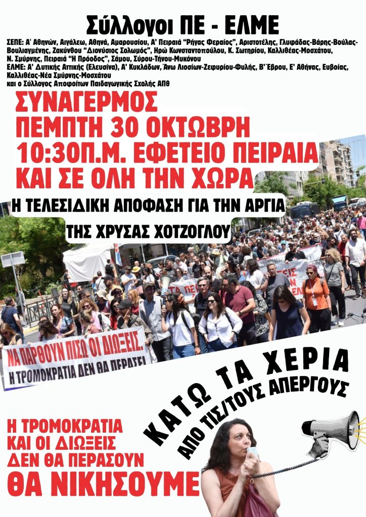 - Το ΔΣ λέει ... ΟΛΟΙ ΣΤΗΝ ΣΥΓΚΕΝΤΡΩΣΗ 30/10 ΣΤΙΣ 11πμ ΕΞΩ ΑΠΟ ΤΟ ΔΙΟΙΚΗΤΙΚΟ ΕΦΕΤΕΙΟ ΠΕΙΡΑΙΑ (ΚΟΛΟΚΟΤΡΩΝΗ 55) – Ο σύλλογος κηρύσσει 1-4 ώρες διευκολυντική στάση εργασίας 30/10/2025 Διοικητικό Συμβούλιο Σχολιάστε Πέμπτη 30/10 εκδικάζεται η ΑΙΤΗΣΗ ΑΚΥΡΩΣΗΣ της Δυνητικής Αργίας της Χρύσας Χοτζόγλου ΝΑ ΠΑΡΘΕΙ ΠΙΣΩ Η ΑΡΓΙΑ – ΝΑ ΣΤΑΜΑΤΗΣΟΥΝ ΟΛΕΣ ΟΙ ΔΙΩΞΕΙΣ Share this:TweetPocketΜου αρέσει αυτό:Like Φόρτωση...